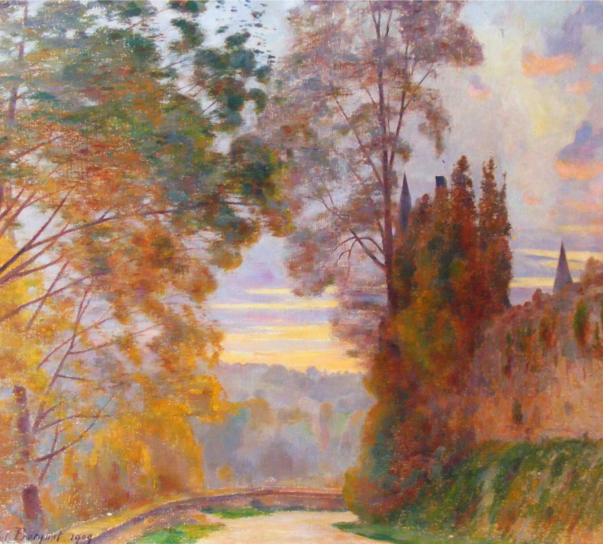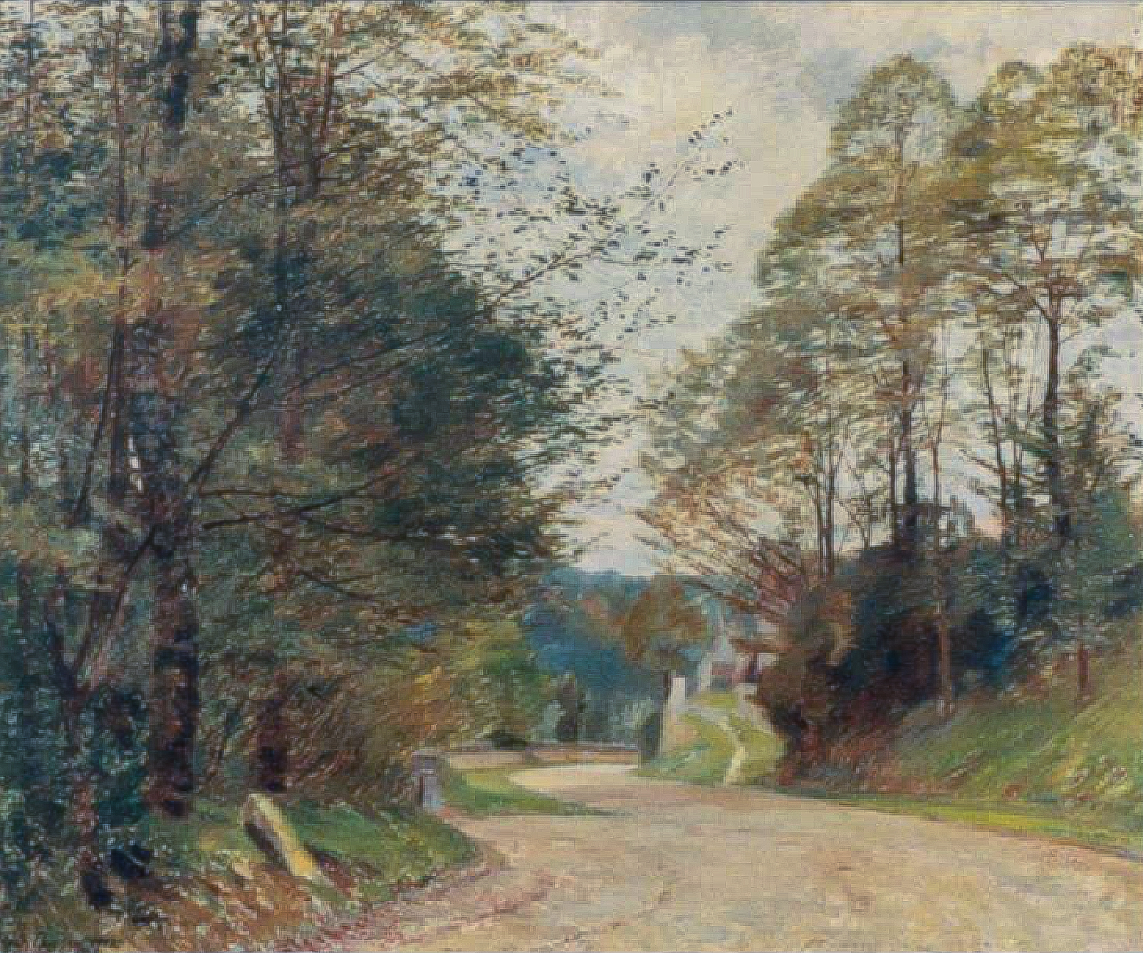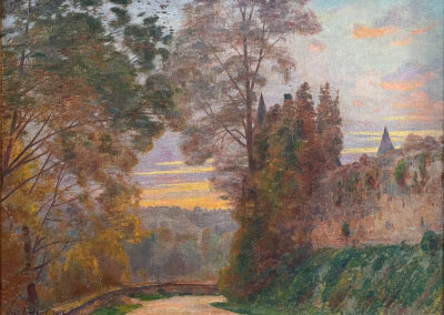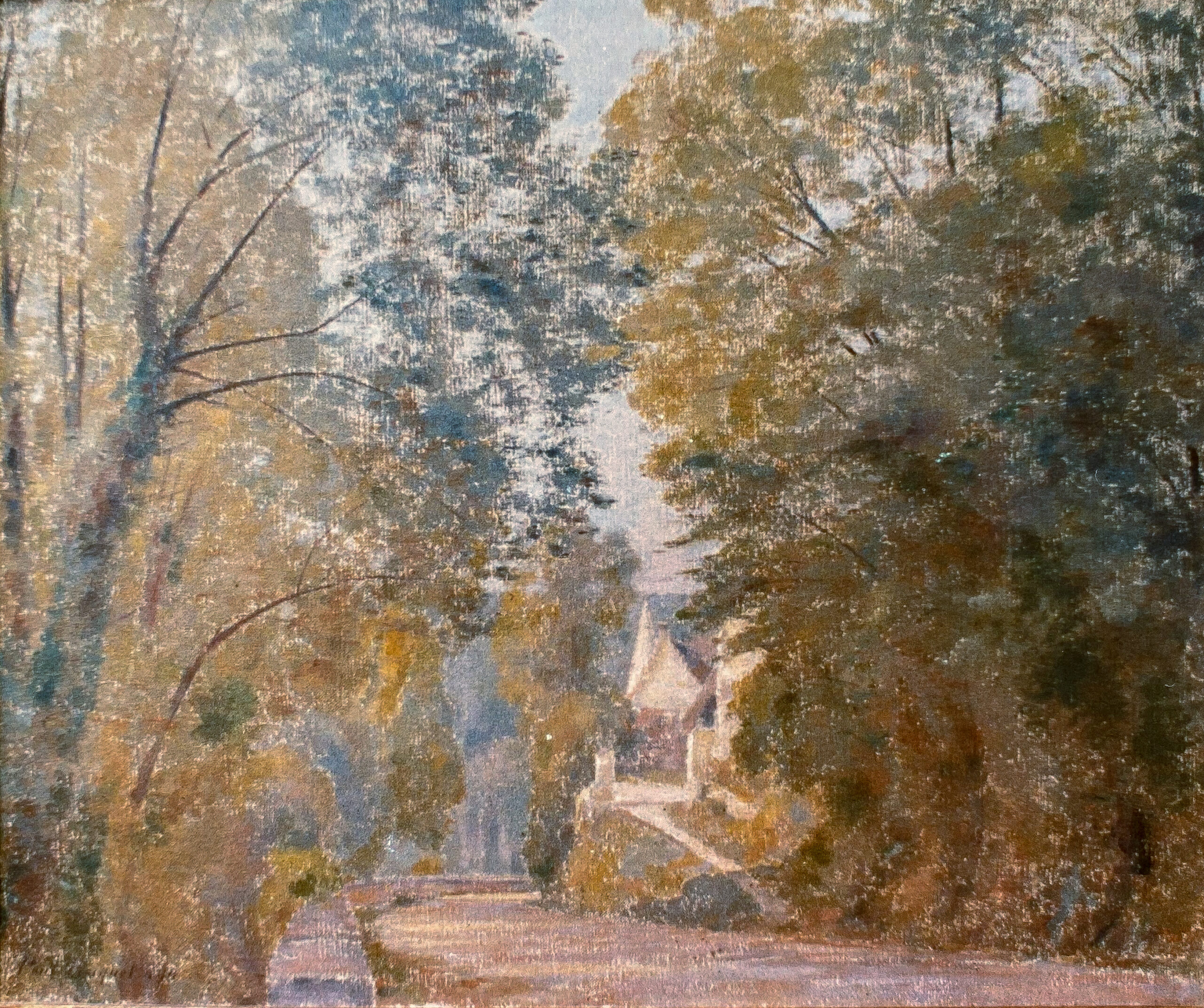 Ce chemin, bordé d’arbres et s’élevant vers une propriété dont on aperçoit les toits pointus ou les tours, apparaît dans plusieurs tableaux exécutés à différentes périodes. Bocquet en donne des versions variées, selon la saison, l’heure du jour ou la technique employée, ce qui montre qu’il ne s’agit pas d’un simple motif occasionnel mais d’un véritable thème d’étude.
