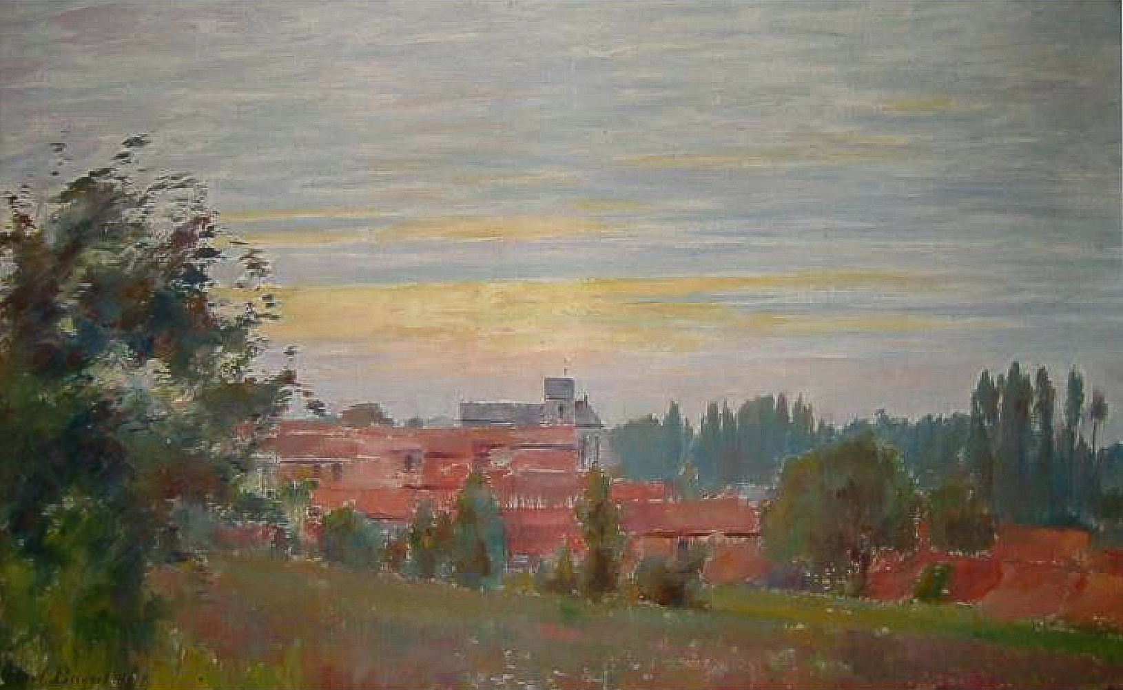 La touche reste souple, souvent légèrement vibrante, et laisse apparaître l’air entre les plans, donnant au paysage une impression de calme et d’équilibre.