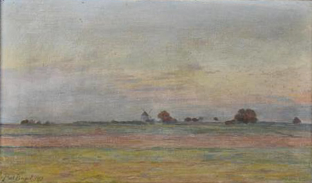 Coucher de soleil sur le moulin et les meules, 1899 (Huile sur toile, 27 × 46 cm)