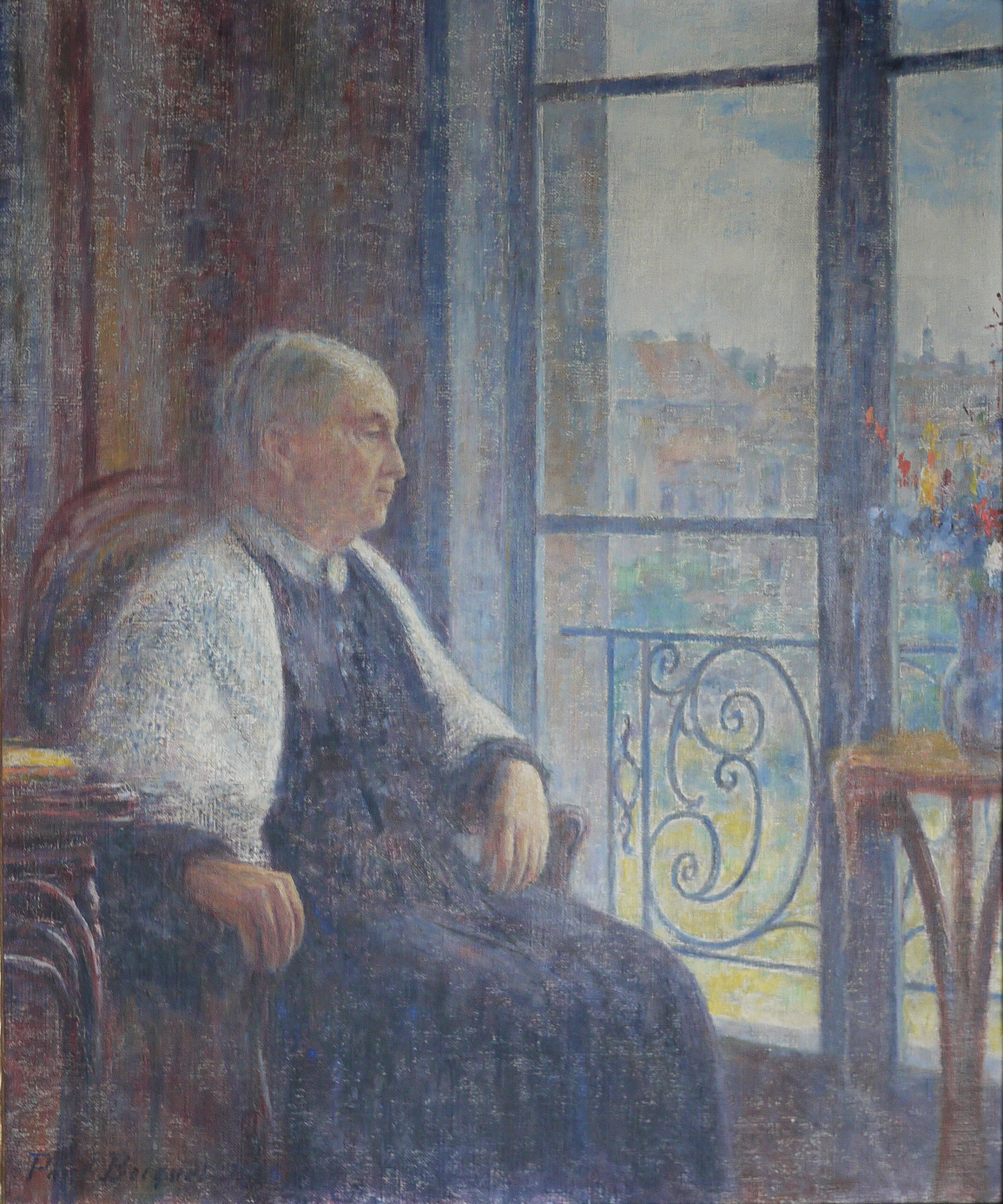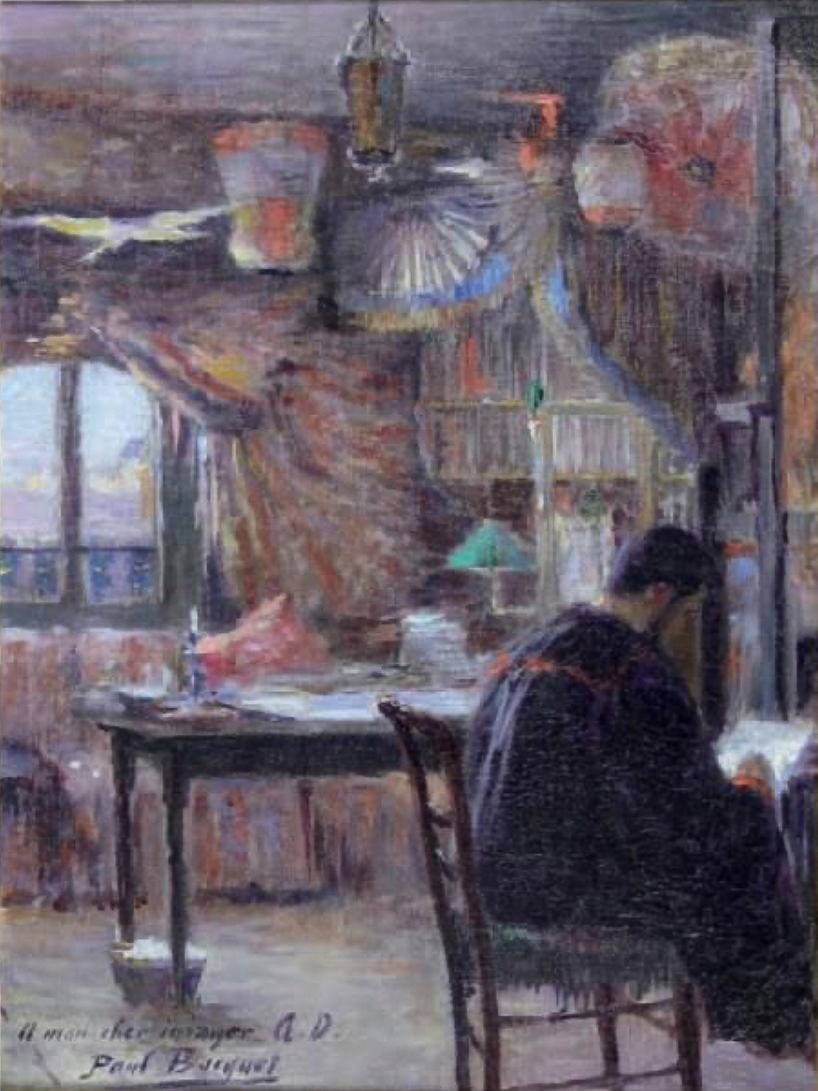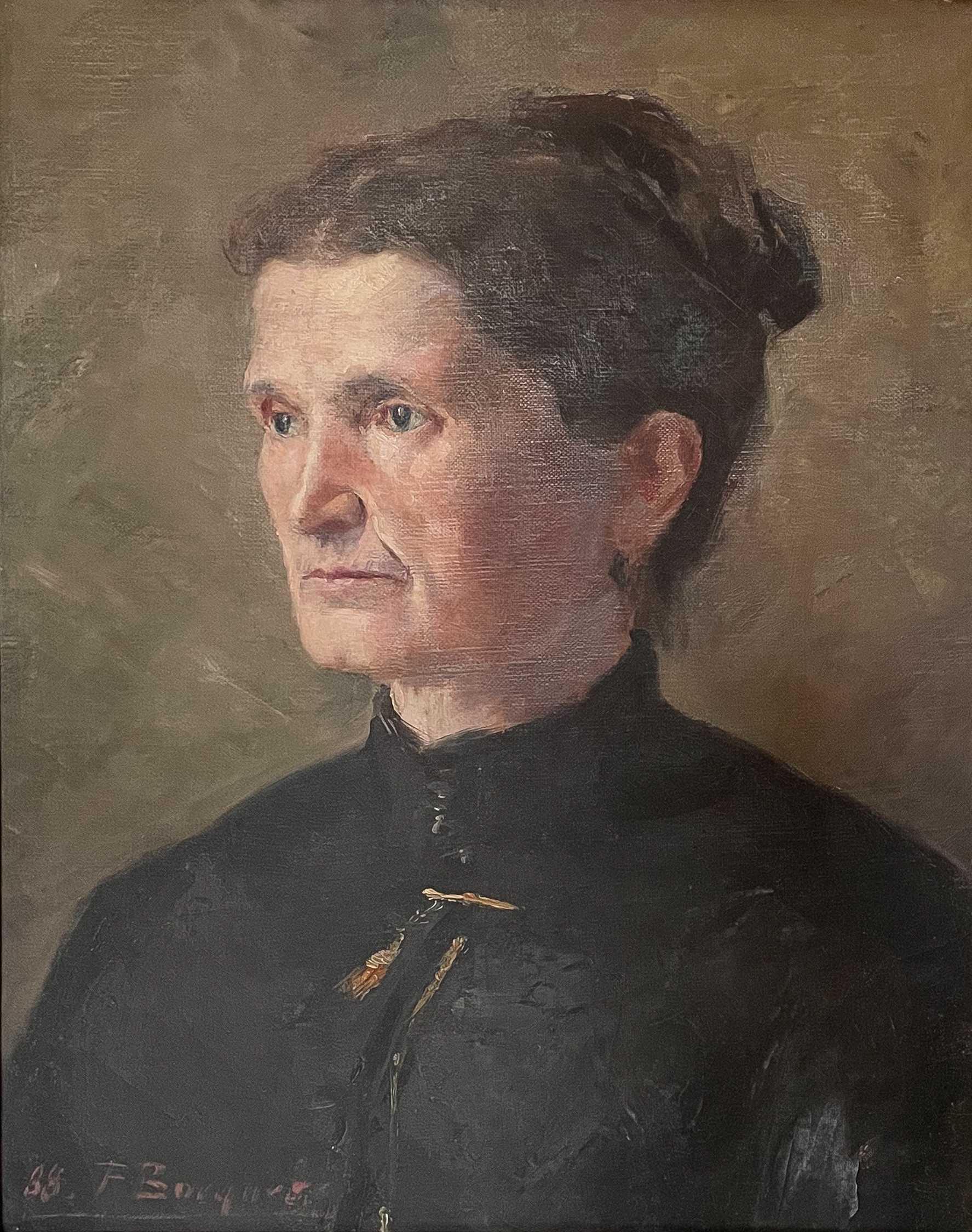 Paul quitte Paris vers le 20 Juillet 1888, passe quelques jours à Reims, puis avec Albert son frère et Juliette sa sœur, se rend à Coeuvres chez la dite “tante Chrétien”, dont il fait ce portrait, d’abord à l’aquarelle, puis à l’huile, bien éclairé et modelé et qui traduit une plus grande maturité dans le dessin.