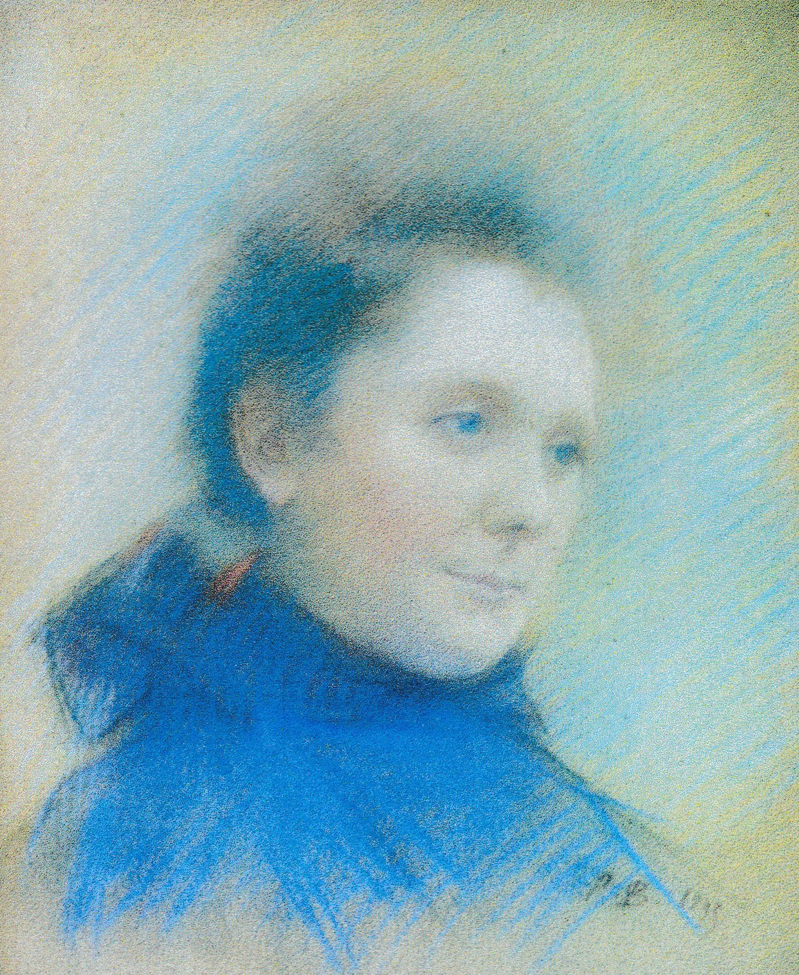 Ce qui est nécessaire pour saisir la vérité, exprimer exactement la ressemblance, mais aussi traduire un état d’âme, il en possède les moyens ; précision du trait et du modelé, observation et pénétration psychologique du sujet, sobriété et sincérité dans l’expression graphique, il a toutes ces qualités et il les montre dans les quelques rares portraits qu’il a faits. Coup sur coup, entre ses séjours à Saint-Quentin, pendant ces deux années 1894 et 1895, il fait deux portraits au pastel, peut- être trois. Ce sont, vers juin 1894, encore un portrait de sa cousine Marie Botz, un an après, celui d’une autre cousine, Mme Jeanne Lemoine (née Langlet).